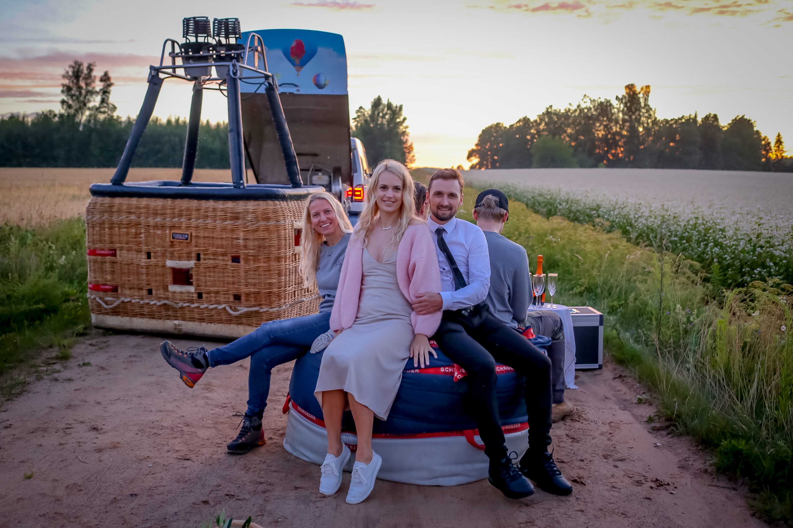 Klassikaline variant hõlmab paari, preestrit ja fotograafi. Loomulikult võime fotograafi maapinnale jätta ja kutsuda korvi hoopiski tunnistajad. Kui soovite tantsida oma esimese valsi puulatvade kohal (ja ilm naeratab meile), siis võime teised reisijad lennu keskel maha panna ja lasta noorpaaril koos minema hõljuda. Loomulikult jääb korvi piloot, sest keegi peab leeki säilitama.
