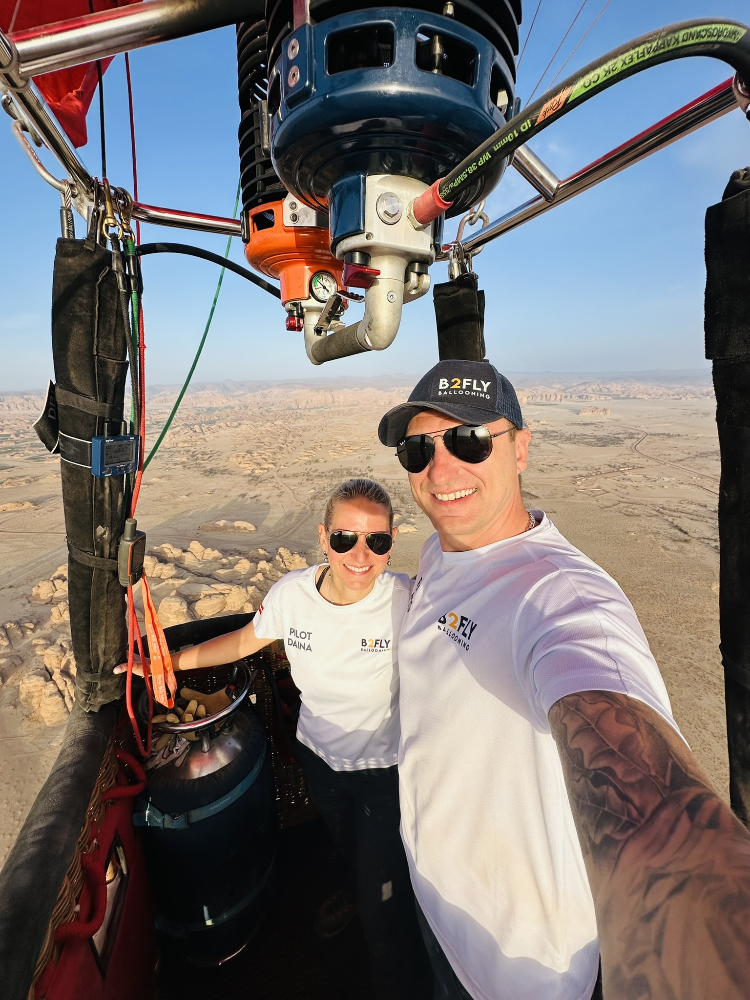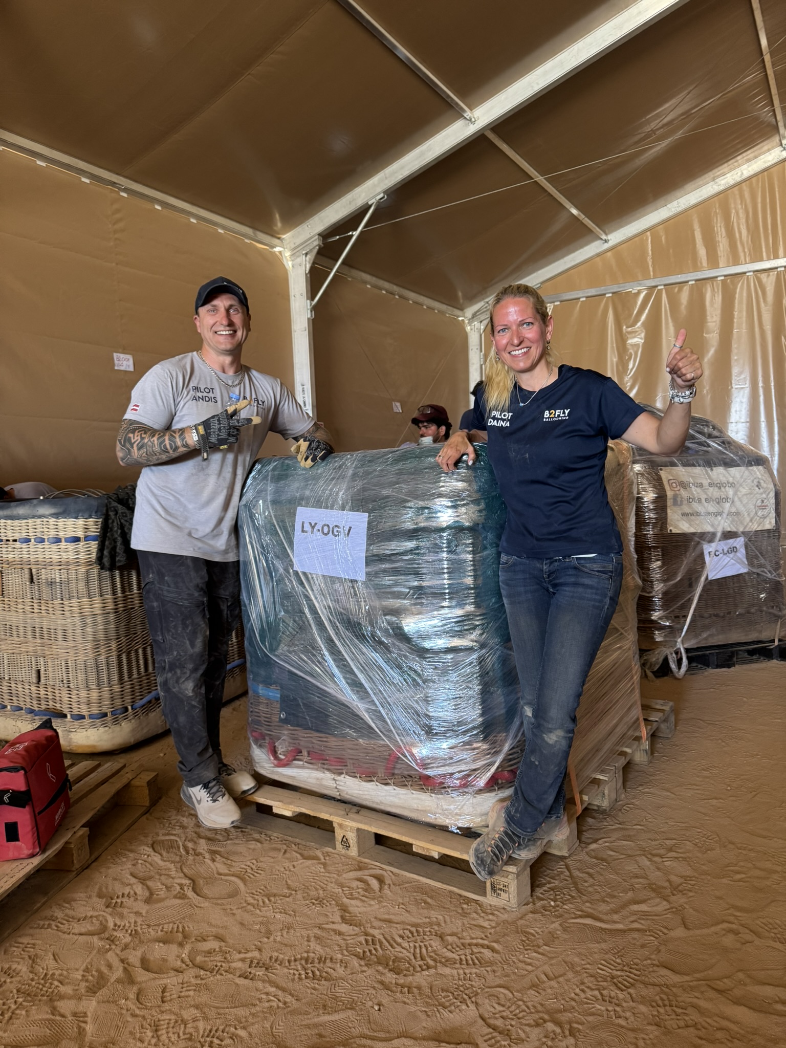 Mūsu balonā joprojām ir AlUlas tuksneša smiltis – tās ieķērušās audumā un nekrīt ārā.